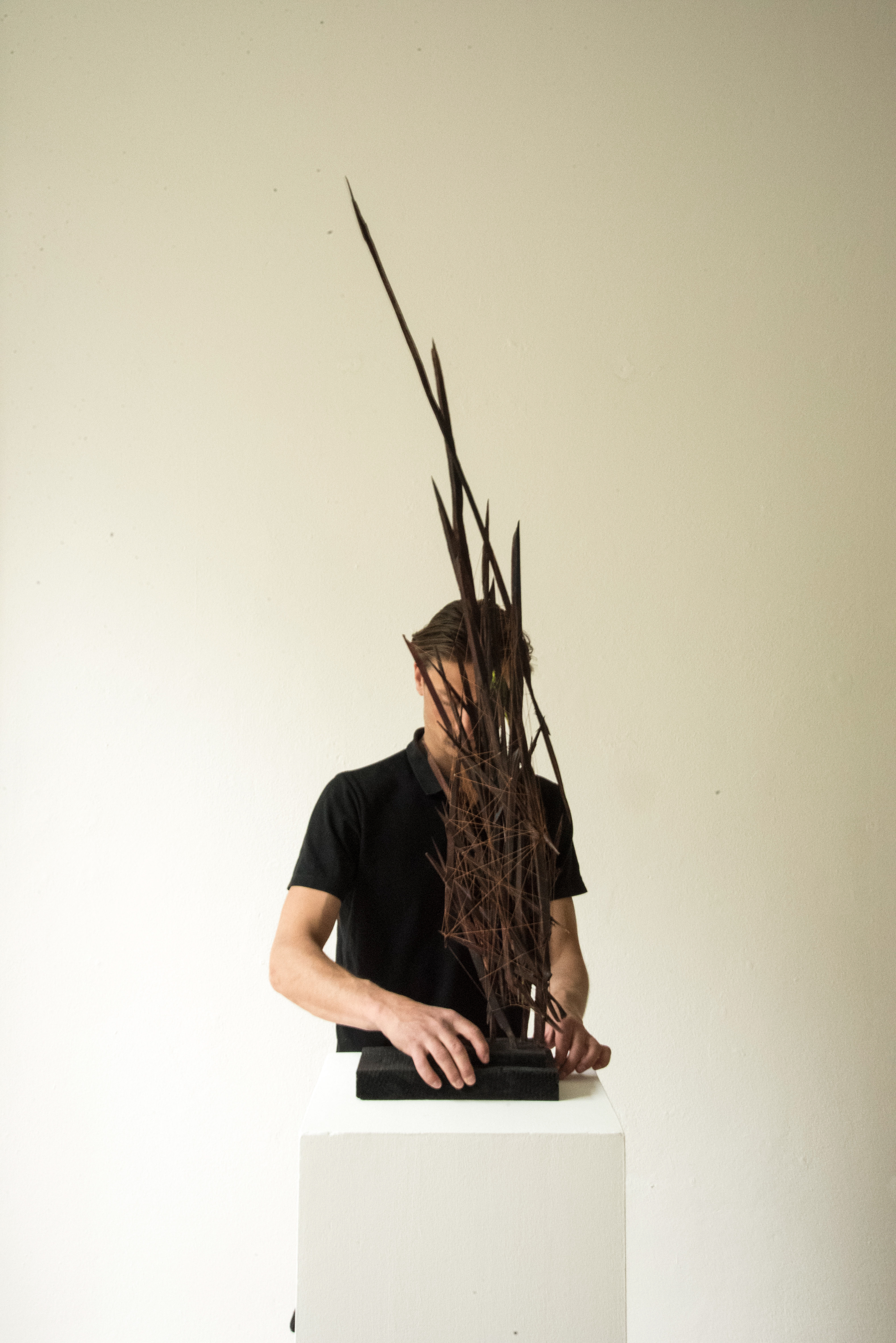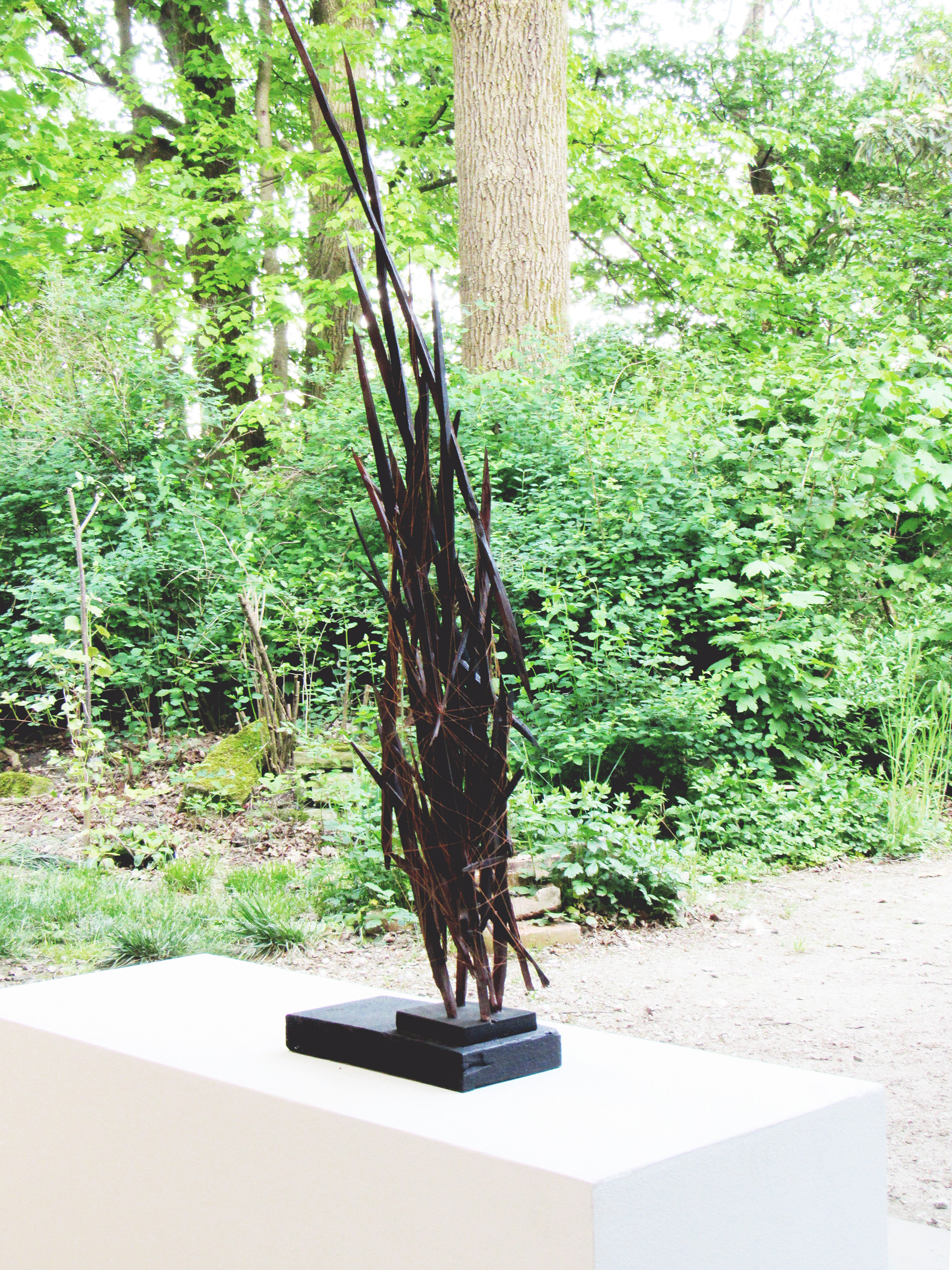 wood, thread, acrylic colour